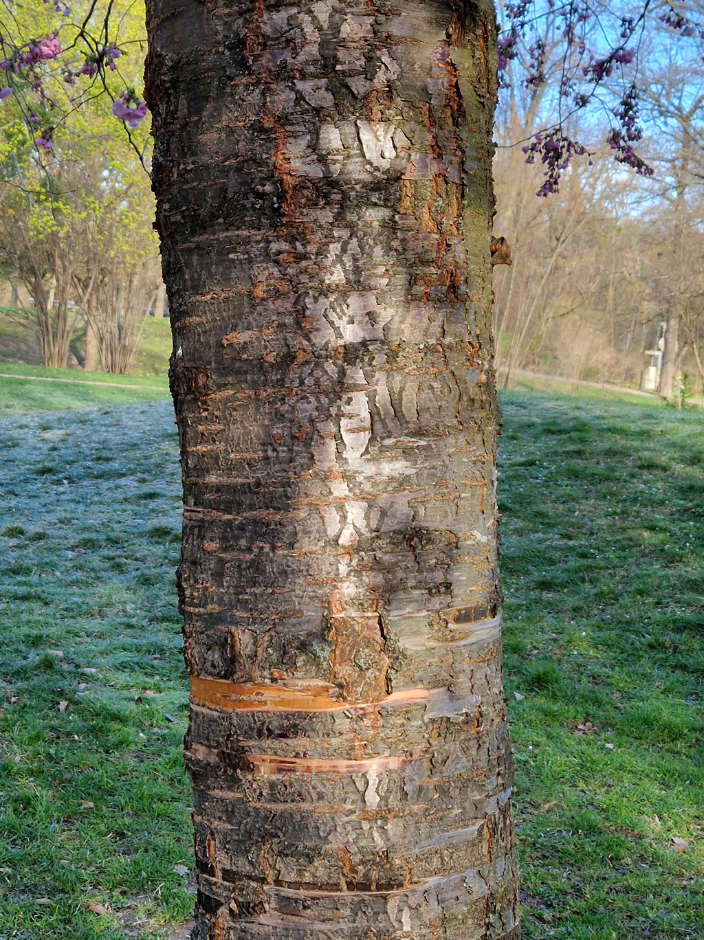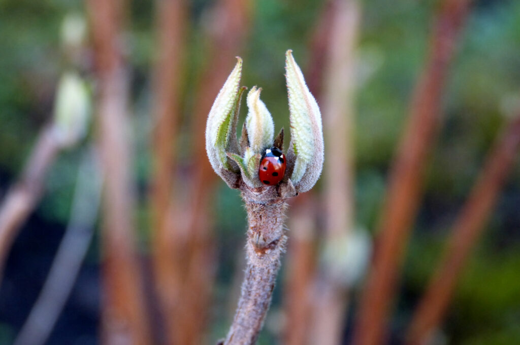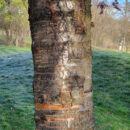 Aber wie funktioniert das jetzt im Frühjahr, wenn der Baum noch gar keine Blätter hat? Der Baum spürt durch die steigenden Temperaturen und längeren Tage den nahenden Frühling und reichert in den Wurzelzellen Substanzen unterschiedlicher Ladung und Konzentration an (Osmose). Dadurch entsteht ein Druckunterschied und als Ausgleich strömt Wasser in die Leitbahnen und es steigt in die Höhe. Bei Ahorn und Birke ist der Anstieg des Saftes im Frühjahr so stark, dass er sich als süßer Saft bemerkbar macht. Im März- April schwellen die Knospen an und der Frühjahrsaustrieb beginnt – oft von unten nach oben, dem steigenden Saft folgend.